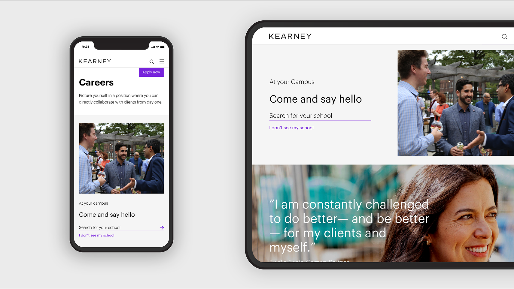 Clients told us what set Kearney apart was its personal, practical approach. Refreshingly different in a sector often seen as elitist and arrogant. We saw an opportunity to build a brand that reflected this humanity and made its people the heroes.